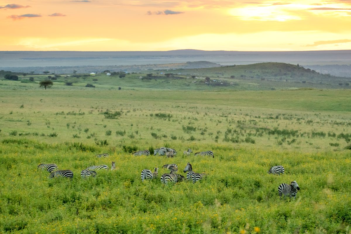 The transition of landscapes from the treeless southern plains to the acacia-dotted "kopjes" (massive granite rock formations) of the central valley.
